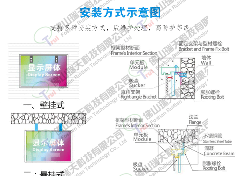 σ≥1.5mm鋼板噴涂表面氟碳涂層處理LED戶外顯示屏,帶后蓋、帶風扇、全防水、全封閉標準箱體。